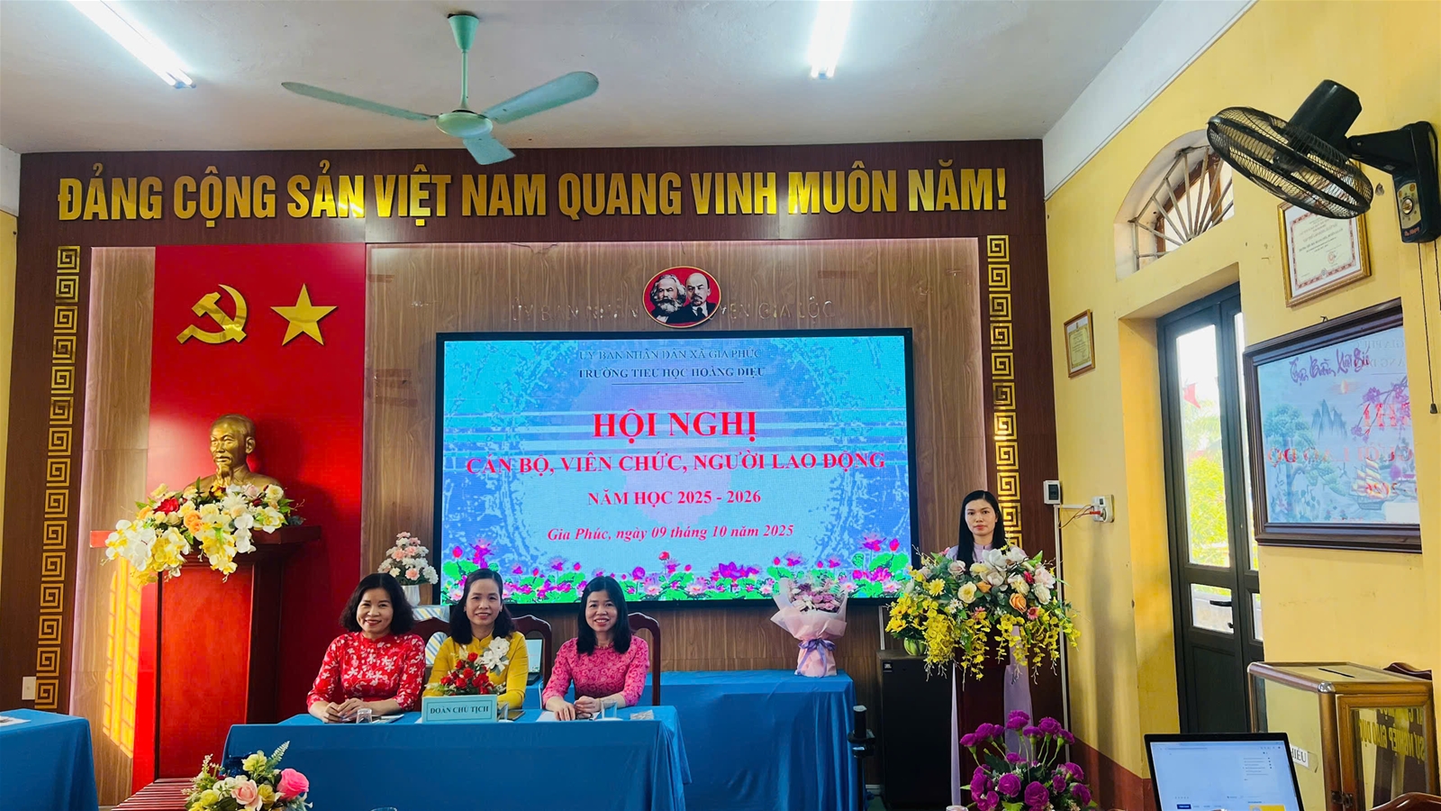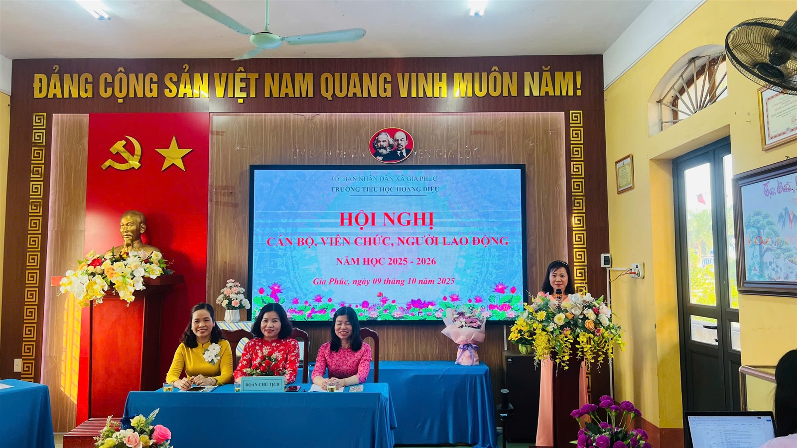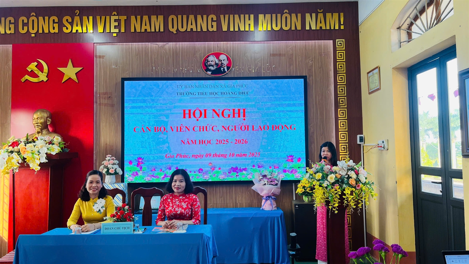 Chiều ngày 09/10/2025 Trường Tiểu học Hoàng Diệu tổ chức Hội nghị viên chức - người lao động năm học 2025 – 2026. Tham dự hội nghị có sự hiện diện của: