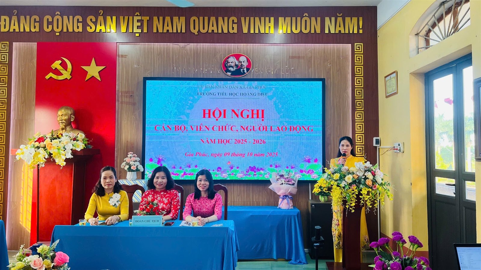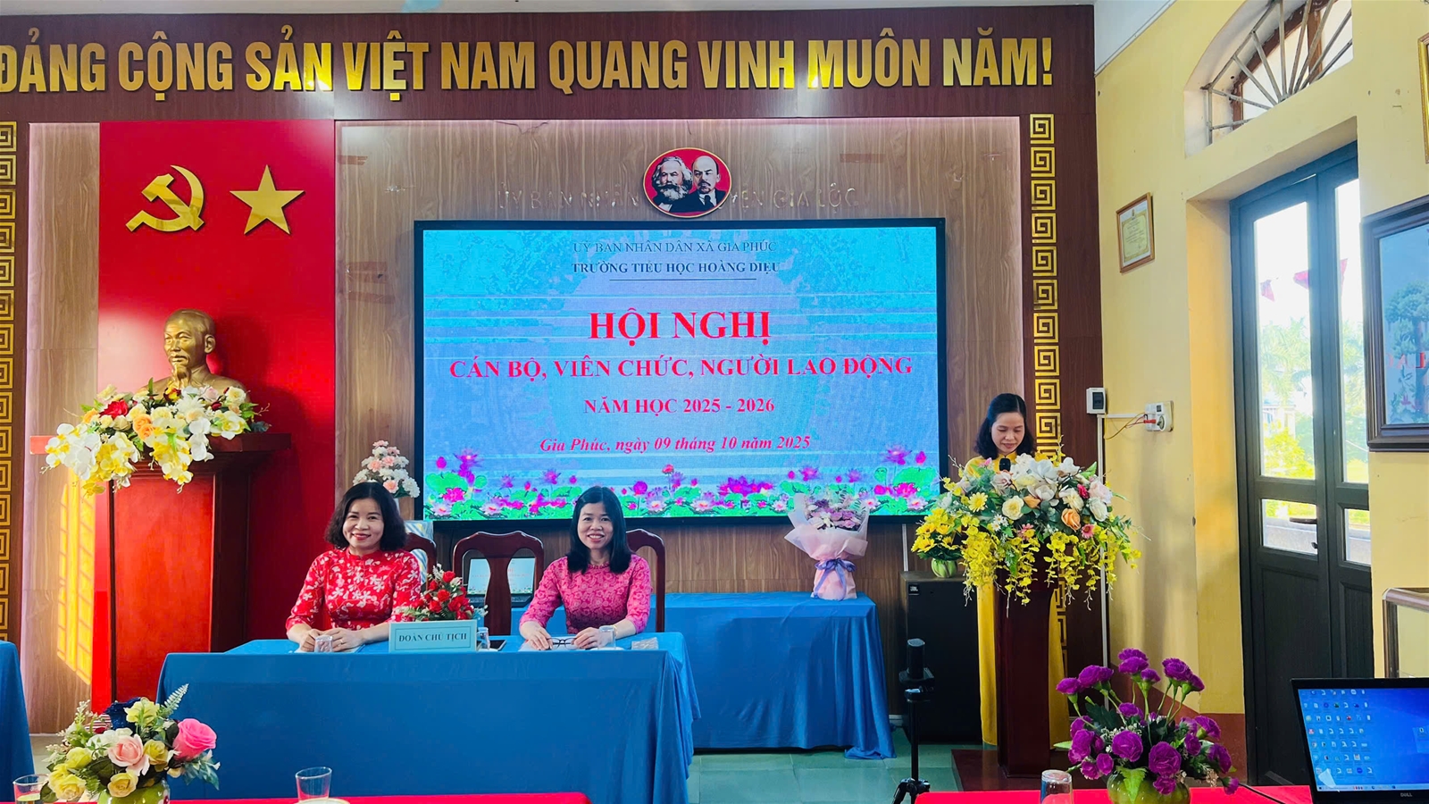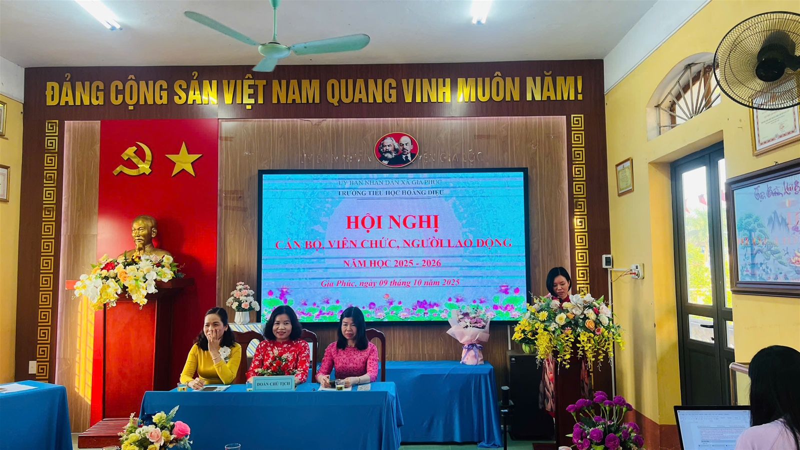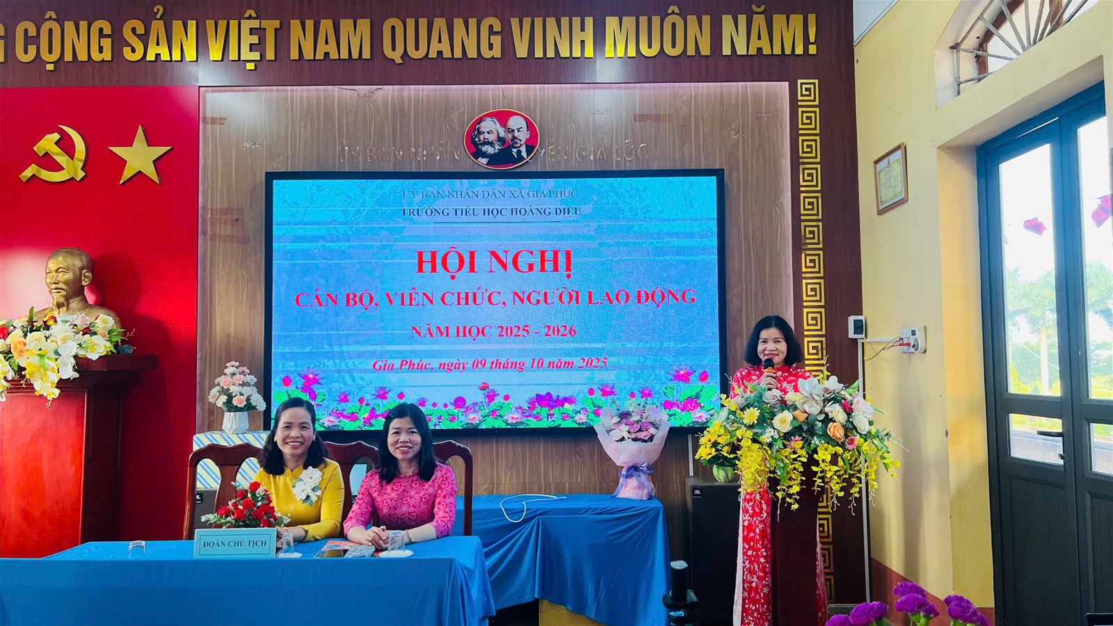 Chiều ngày 09/10/2025 Trường Tiểu học Hoàng Diệu tổ chức Hội nghị viên chức - người lao động năm học 2025 – 2026. Tham dự hội nghị có sự hiện diện của:
