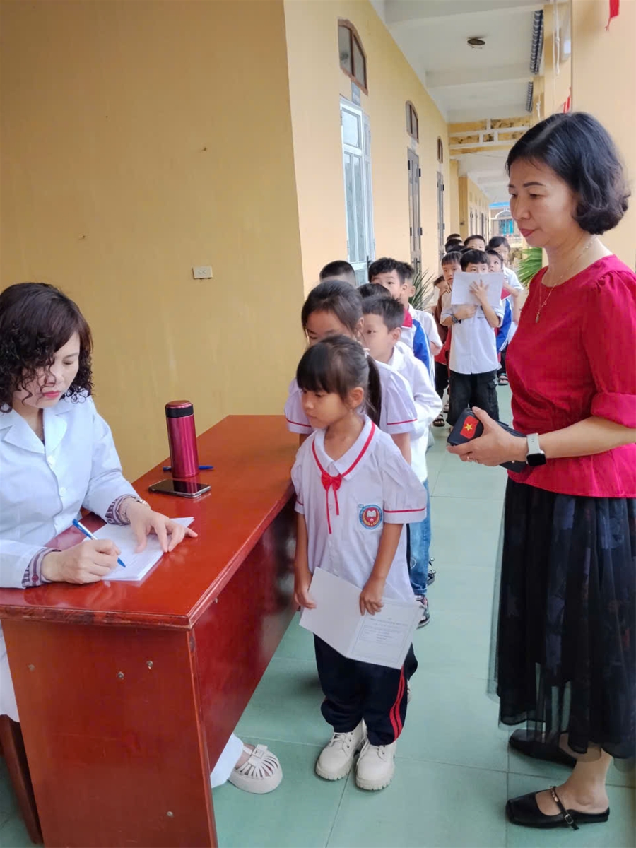 Khám sức khỏe cho học sinh là một trong những hoạt động thiết thực nhằm nâng cao chất lượng chăm sóc sức khỏe toàn diện cho học sinh. Đây cũng là cơ hội để chúng ta kiểm soát và hạn chế một số nguy cơ của các bệnh học đường. Để đảm bảo sức khỏe của học sinh luôn ổn định và tập trung cho việc học, cần có sự phối hợp chặt chẽ giữa gia đình và nhà trường trong việc quản lý sức khỏe của học sinh. Ngày 30/10/2025, Trường Tiểu học Hoàng Diệu phối hợp với Trung tâm Y tế dự phòng Gia Lộc tổ chức khám sức khoẻ cho học sinh toàn trường. Các nội dung khám đó là: Đo chiều cao, cân nặng, đo thị lực, huyết áp, khám răng, khám ngoài da,… Đây là việc làm hàng năm mà Y tế học đường nhà trường thực hiện với mục đích phân loại sức khỏe ban đầu cho học sinh, phát hiện ra một số bệnh thông thường của các em để tư vấn với gia đình và các em về chế độ dinh dưỡng, chế độ luyện tập sao cho các em có một sức khỏe tốt nhất để học tập đạt kết quả cao.